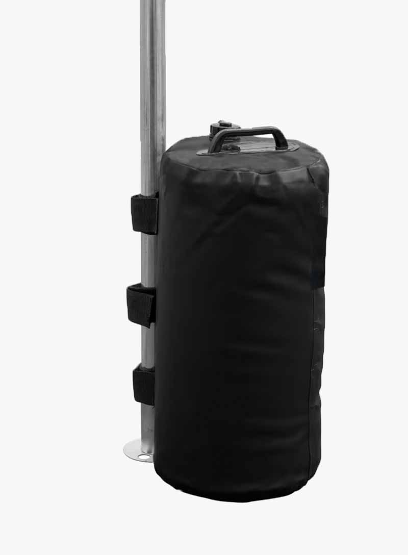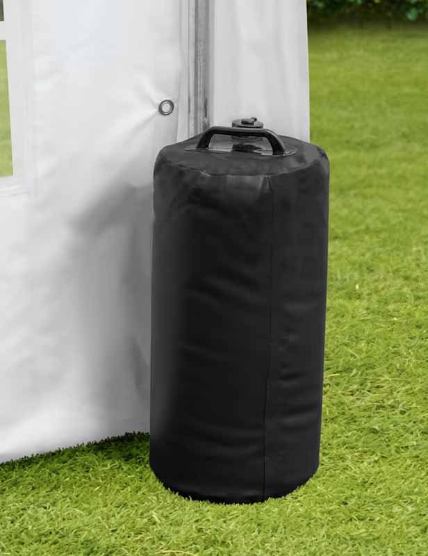 Praktische Gewichtstaschen zur sicheren Beschwerung von Faltpavillons und zur Erhöhung der Standstabilität. Die Taschen werden einfach per Klettverschluss an den Standbeinen befestigt und können bequem mit Wasser befüllt werden. Jede Gewichtstasche fasst ca. 20 Liter und erreicht im gefüllten Zustand ein Gesamtgewicht von ca. 20kg für zuverlässigen Halt. Robustes, PVC-beschichtetes Material sowie Tragegriffe und Drehdeckel sorgen für einfache Handhabung und schnellen Aufbau.