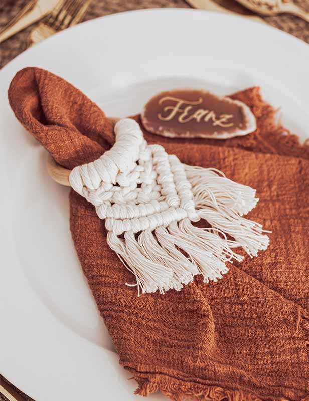 Macht Eure Veranstaltung unvergesslich und verpasst Eurem Table-Setting mit unserem Serviettenring Makramee Holzring Braun den letzten Schliff. Hinweis: Der Serviettenring ist nur als Mietartikel erhältlich. Darum reserviert bitte frühzeitig, um die Verfügbarkeit sicherzustellen!